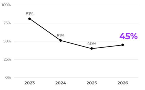 Sentiment has rebounded slightly compared with 2025 but remains well below the post-pandemic highs seen earlier in the decade. About 45% of executives expect higher business performance in 2026, while another 47% expect results to be similar to 2025, reinforcing a view that the industry is shifting from rapid expansion toward a phase of disciplined growth and normalisation.